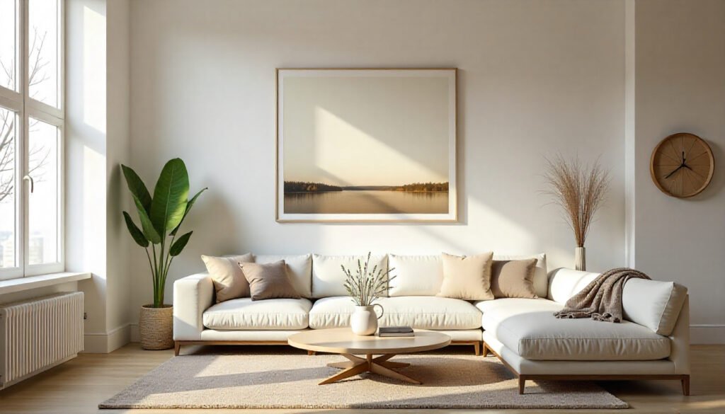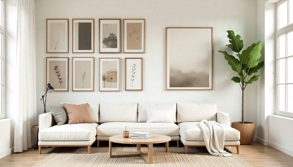 A minimalist living room should feel open and breathable — but overcrowded walls can instantly destroy that effect. Many people hang multiple art pieces, gallery walls, clocks, signs, or shelves on every available surface, thinking it adds personality. Instead, it adds visual clutter and makes the room feel smaller and busier.