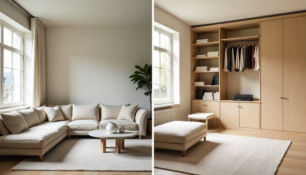 Think of storage as part of your design, not an afterthought. When everything has a home, your living room remains tidy, calm, and aligned with minimalist principles.