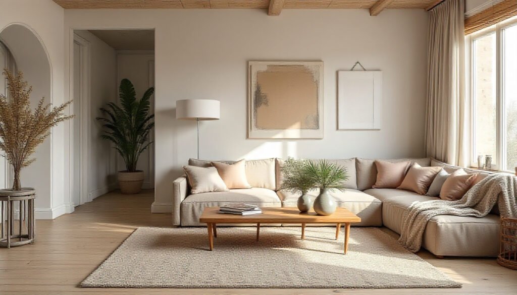 Add warm textures like soft throws, natural wood, and warm lighting to balance simplicity with comfort.
