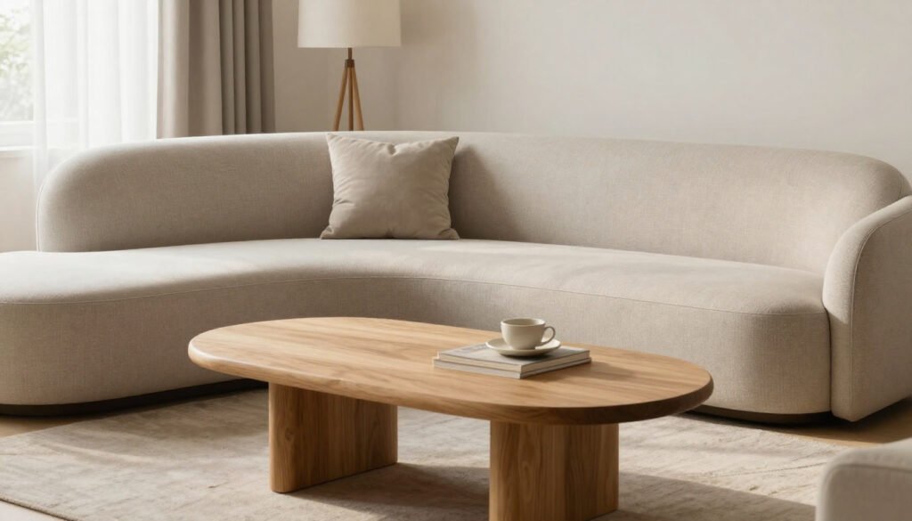 Rounded furniture creates a gentle, organic feel that pairs beautifully with neutral tones and layered textures. This simple shift in shape helps transform your living room into a space that feels modern, soft, and effortlessly cozy.