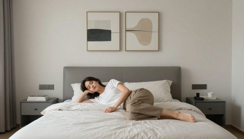A restrained color scheme doesn’t feel boring; it feels intentional. It creates a luxury-hotel calm that supports better sleep while making the room look effortlessly stylish and expensive.