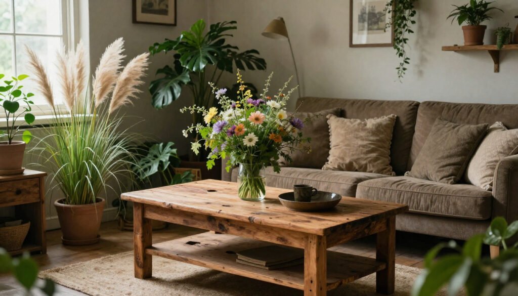 Greenery also adds contrast to wood elements, making textures pop and colors feel richer. Even a single vase of wildflowers or dried pampas grass can transform your space into something softer, more charming, and beautifully natural. And the best part? Plants improve air quality and lighten the overall mood of any room.