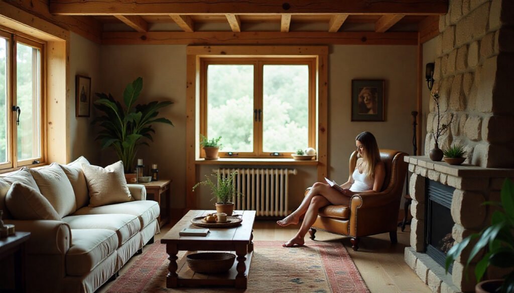 Layering textures also elevates a simple room into a rich, sensory experience. Mix and match materials—pair a fluffy throw with a burlap pillow, add a woven jute rug beneath a soft cotton one, or place a cozy sheepskin over your wooden armchair. It’s these small details that create that signature rustic warmth everyone falls in love with.