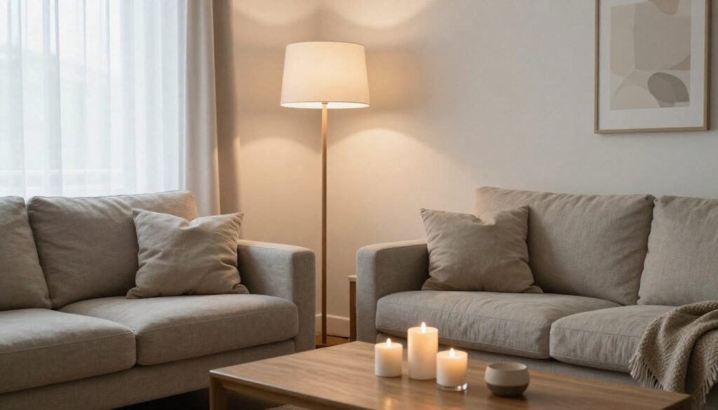 Creating a warm Scandinavian living room isn’t just about furniture and color—lighting plays a major role in making the atmosphere feel inviting, soft, and lived-in. Instead of relying on a single overhead light, Scandi interiors use multiple warm-toned lights placed at different heights to create gentle, ambient layers.