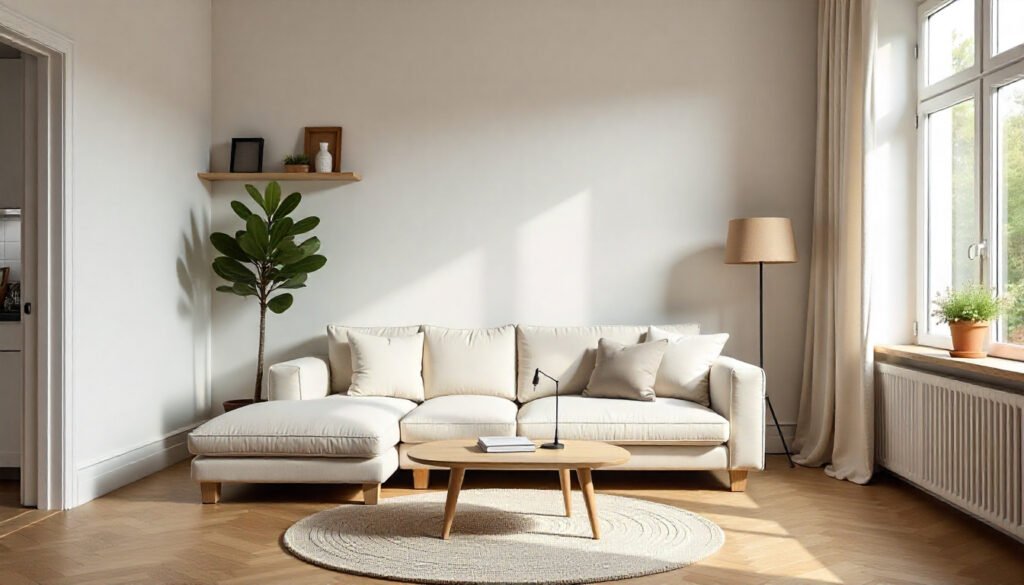 Using a neutral foundation allows every element in your room—texture, wood tones, natural accents, and décor—to stand out beautifully without overwhelming the eye. This approach makes your living room feel spacious even if you live in a small apartment.